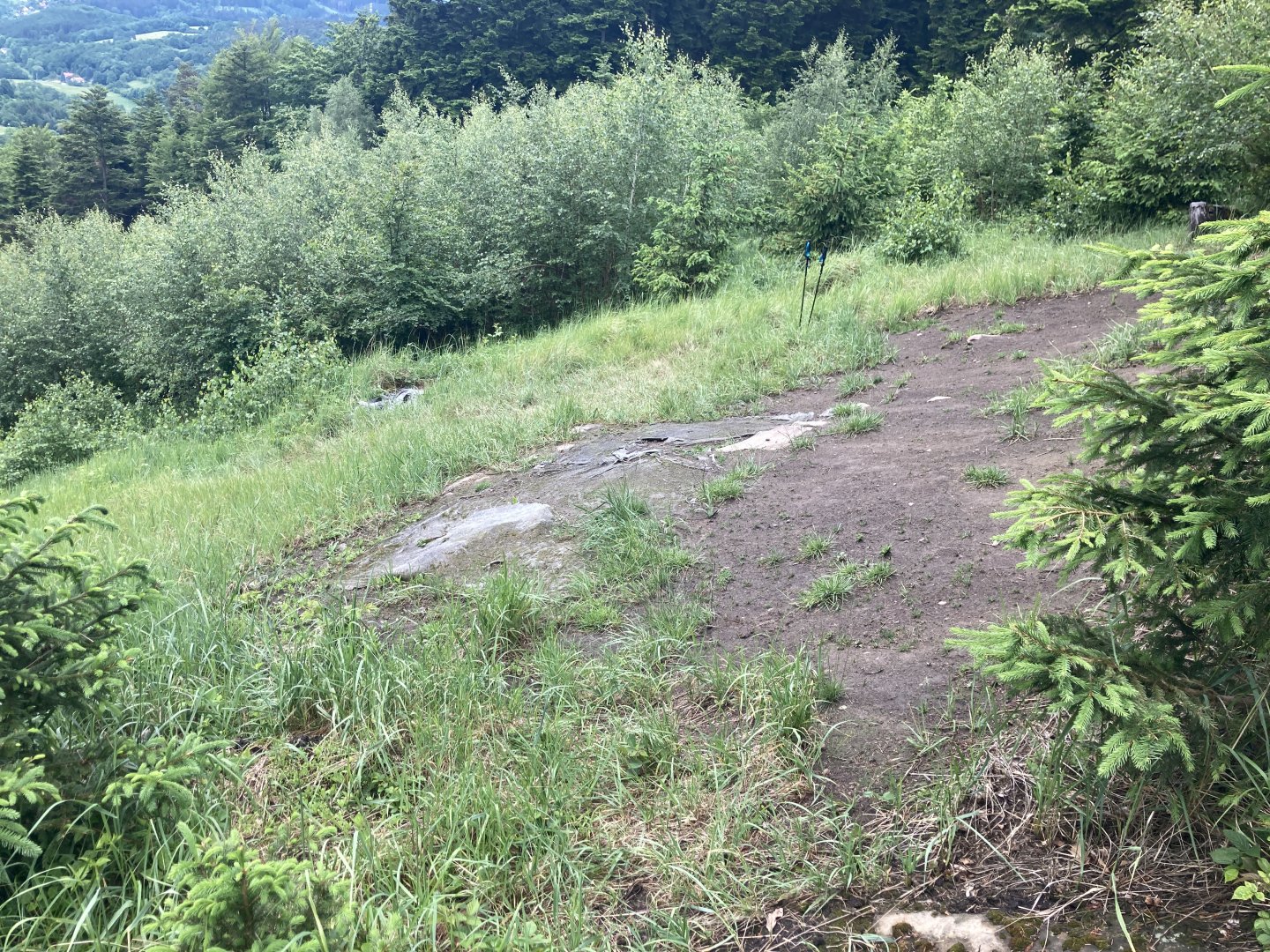 Povrch je pěkně upravený, ale za deště je bahno = špinavý padák.